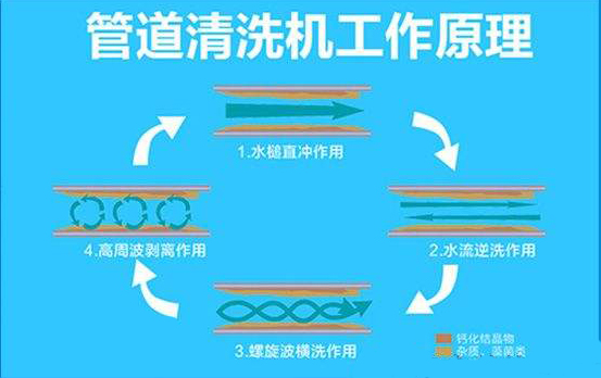 以水和空氣為介質通過水之新高周波脈沖發生器產生高頻振蕩的高周波脈沖對管道進行水管清洗的一種新型技術,實現對管道內壁以高頻振蕩、水槌效應、螺旋環洗、微泡爆破等不同方式進行快速沖刷清洗,該技術主要應用在自來水供水管路、冷熱交換系統(地暖、中央空調、模溫機、模具水路、飲料生產設備等)。